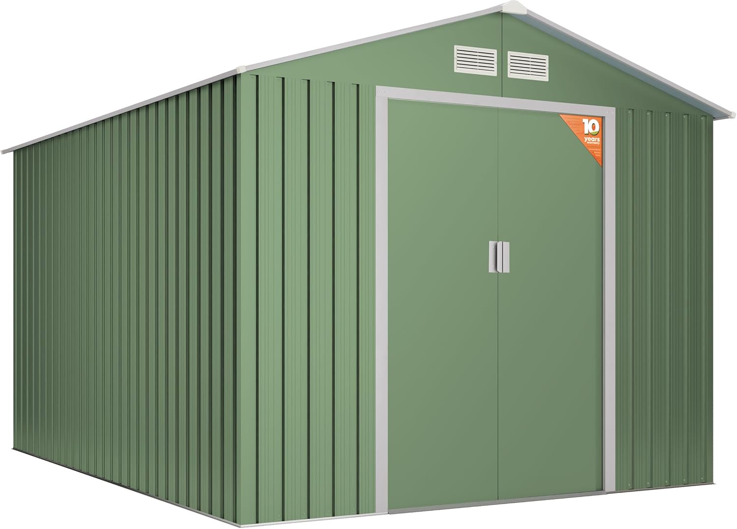 Wasabi - Caseta Jardín Exterior 8,08m2 Light Green - 258x313x202cm - Doble Puerta Corredera - Rejillas Ventilación - Techo a 2 Aguas - Cobertizo de Almacenamiento Metálico