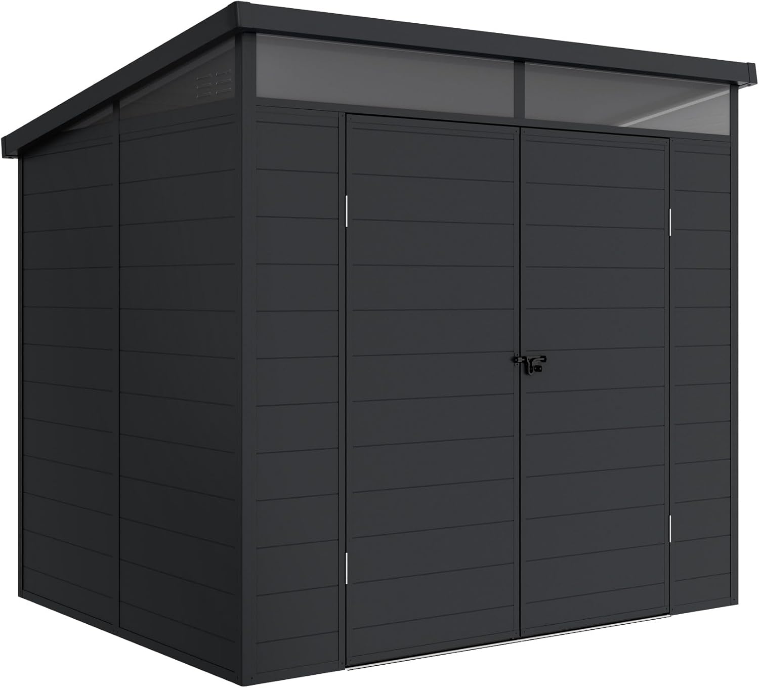 Wasabi - Caseta de Resina Jardín Terra - Tragaluz 360 - Estructura Reforzada de Aluminio y PVC - Protección UV - Impermeable - Gris Antracita - Cobertizo Exterior 4,57m2 - 238x192x215cm