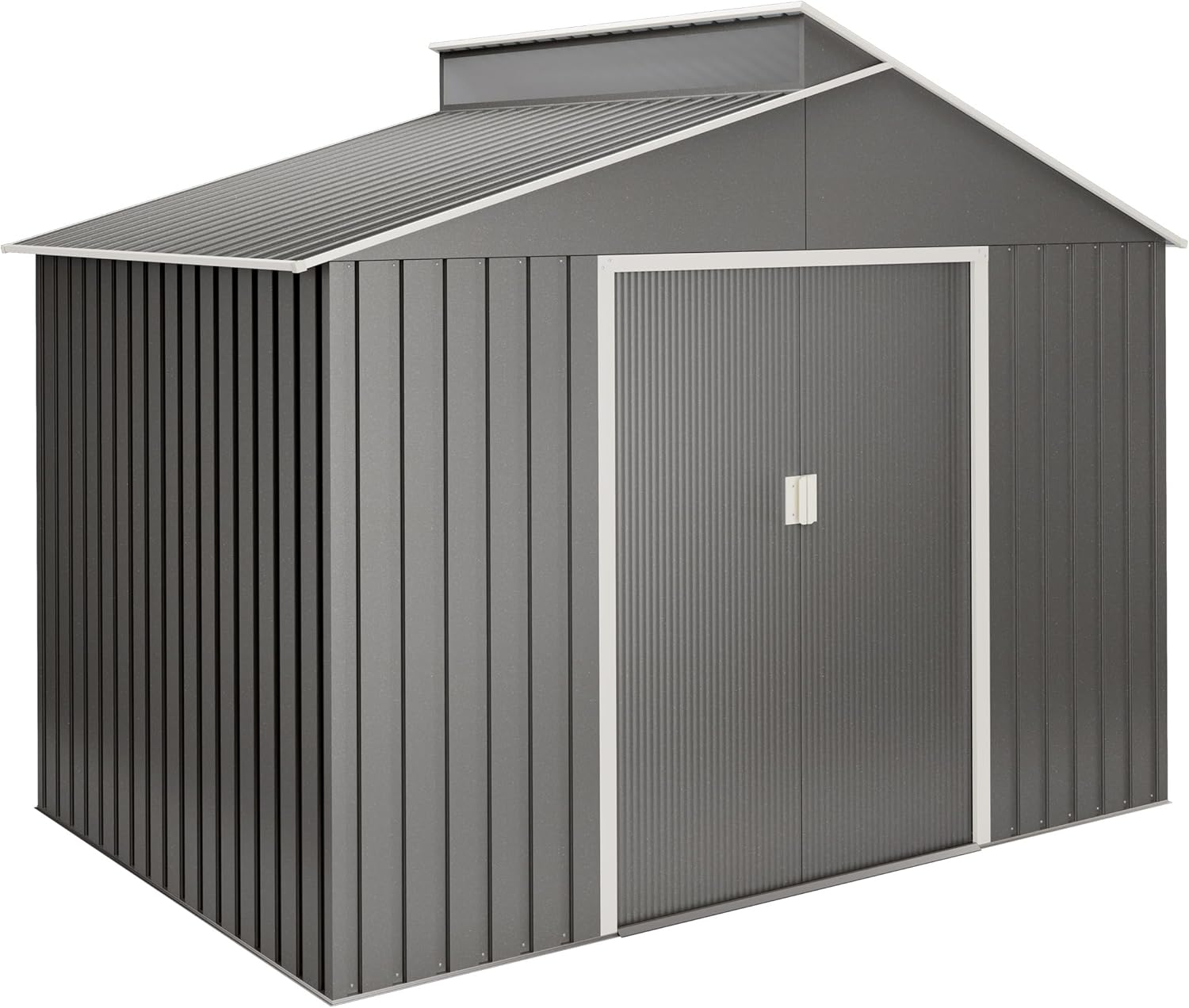Cobertizo de Jardín Exterior 240.4x192.3x191 cm, Cobertizo de Almacenamiento con Techo Inclinado, Metálico Caseta de Jardín con Puerta y Ventilación, Armario Exterior Terraza, Gris