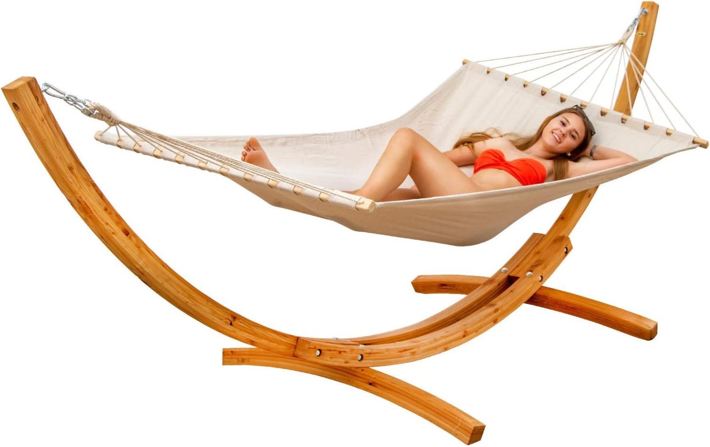 AMANKA Hamaca Terraza con Soporte - 325 cm Madera Exterior - Jardín con Colgante - Hamaca Doble - Marco de Jardín