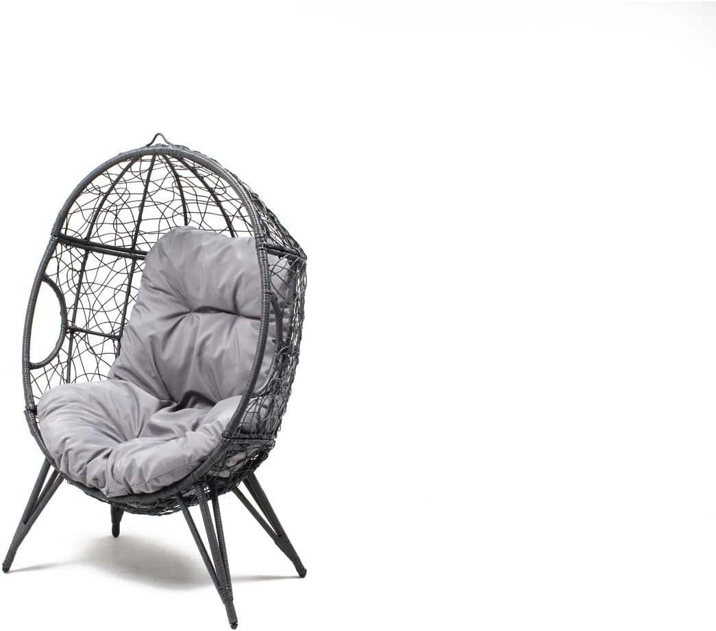CONCEPTO FÁBRICA - Sillón Huevo sobre Pies Beige de Resina Gris Aspecto Ratán - Diseño Jane - Estructura de acero - Cojín repelente al agua - Hamaca Columpio en Pie Terraza Jardín Balcón - Resistente