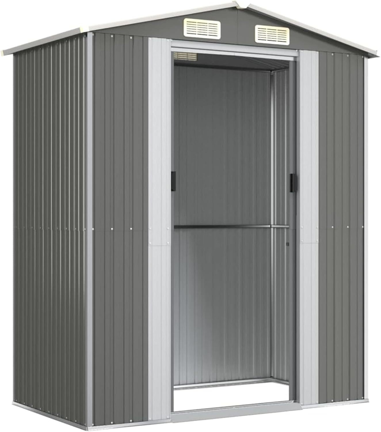 Festnight Cobertizo de Jardín Exterior Caseta de Jardín 192 x 108 x 223 cm Caseta de Jardín Metálica para Almacenamiento de Herramientas con 2 Puertas Correderas y 4 Ventanas para Terraza Gris Claro