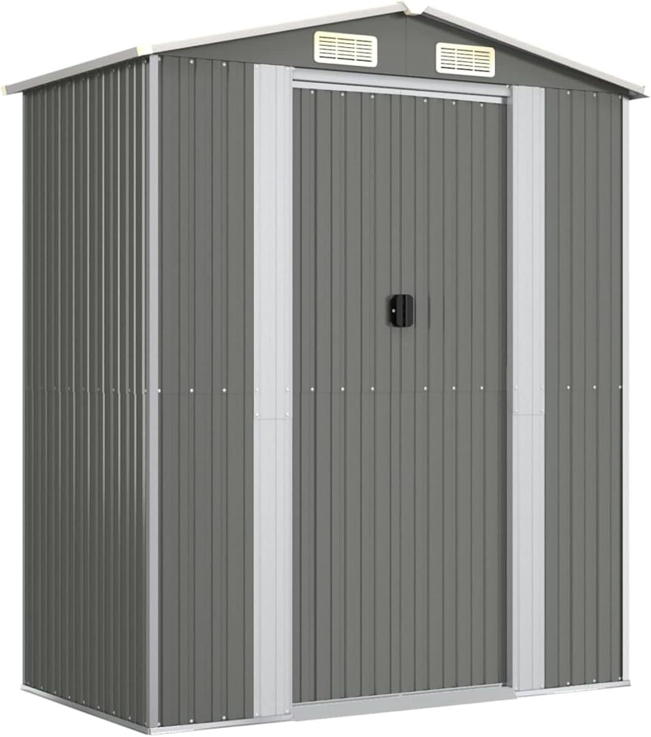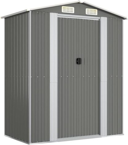 Festnight Cobertizo de Jardín Exterior, Caseta de Jardín 192x108x223 cm, Caseta de Jardín Metálica, Casetas Jardin Exteriores para Almacenamiento de Herramientas con Puertas Correderas Marrón Claro