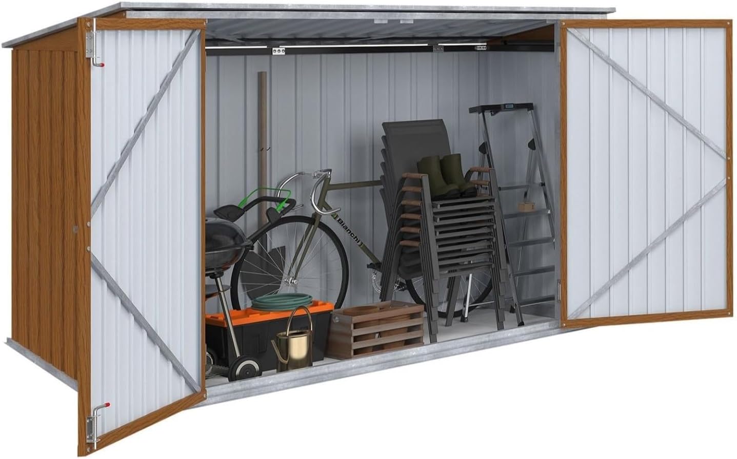 IDMarket - Caseta de jardín de metal efecto madera bloqueable, multialmacenamiento para bicicletas, herramientas, basura