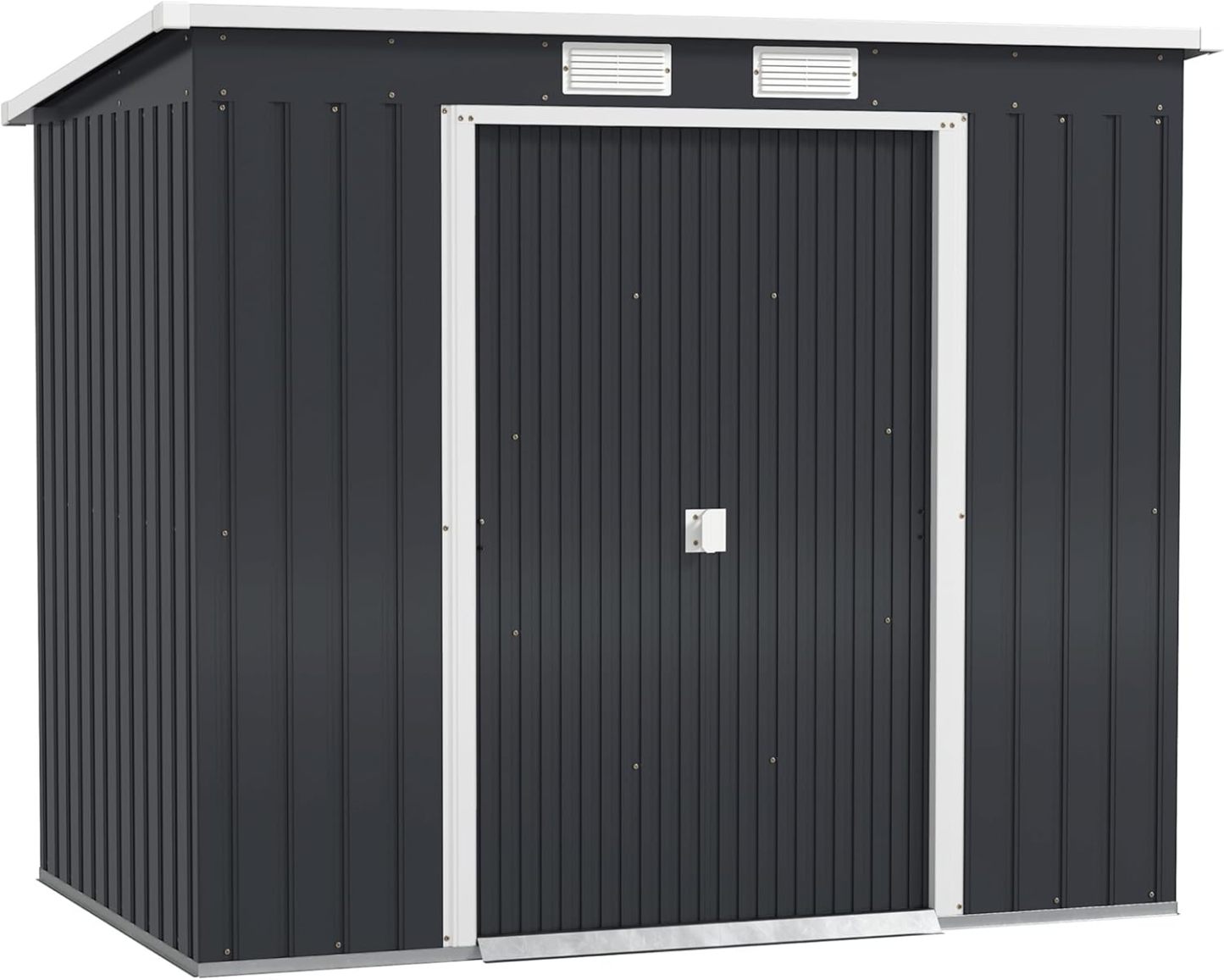 Outsunny Caseta de Jardín Exterior 2,4 m2, 213x130x172 cm, Cobertizo de Jardín Exterior Metálico con Puerta Corredera, Techo Inclinado, Base Refuerzo Suelo NO Incluido y 2 Ventanas, Gris Oscuro