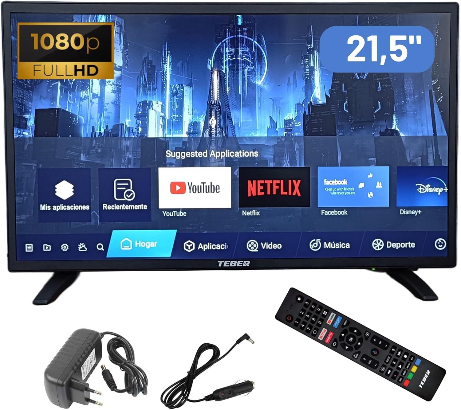 Televisor Smart TV de 22 Pulgadas. con Adaptador de 12v y 230v. Android. Full HD. DVB-S2CT2T. para autocaravanas, Campers, viviendas, caravanas, Barcos. 22 Pulgadas